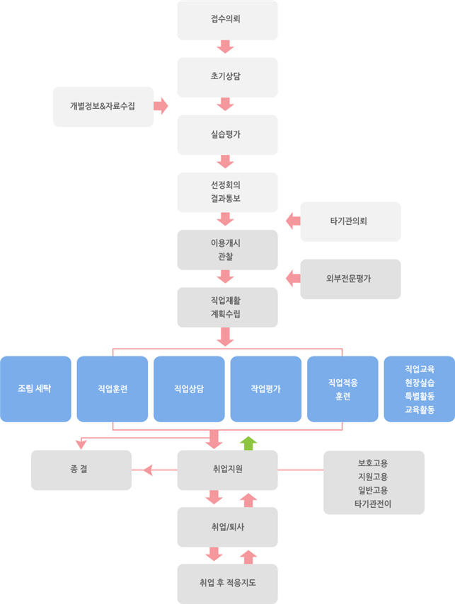 • 직업이 필요한 발달장애인을 직업적응, 작업, 사회적응 등 사회성 훈련